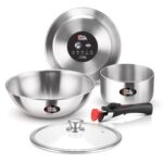 - What’s included : Utensils set : Tea Pan 16cm, Frying Pan 22cm, Kadai with Glass Lid 24cm, One Detachable Handle