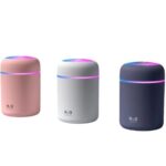 - A light ring is visible around the middle section of the diffuser body, creating a colored light effect during operation.