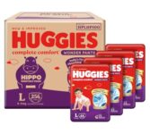 Huggies Complete Comfort Wonder Pants | Pant Style Baby Diapers Large Size, 256 Count | India’S Fastest Absorbing Diaper, Clinically Proven To Prevent Diaper Rash | Ideal For 9 To 14 Kgs (64 Count, Pack Of 4)
