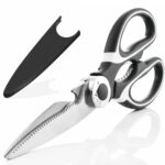 - PREMIUM STAINLESS STEEL BLADES: Crafted from high-quality stainless steel with a matte black finish, these kitchen scissors feature sharp serrated blades measuring 20 cm for precise, effortless cutting.